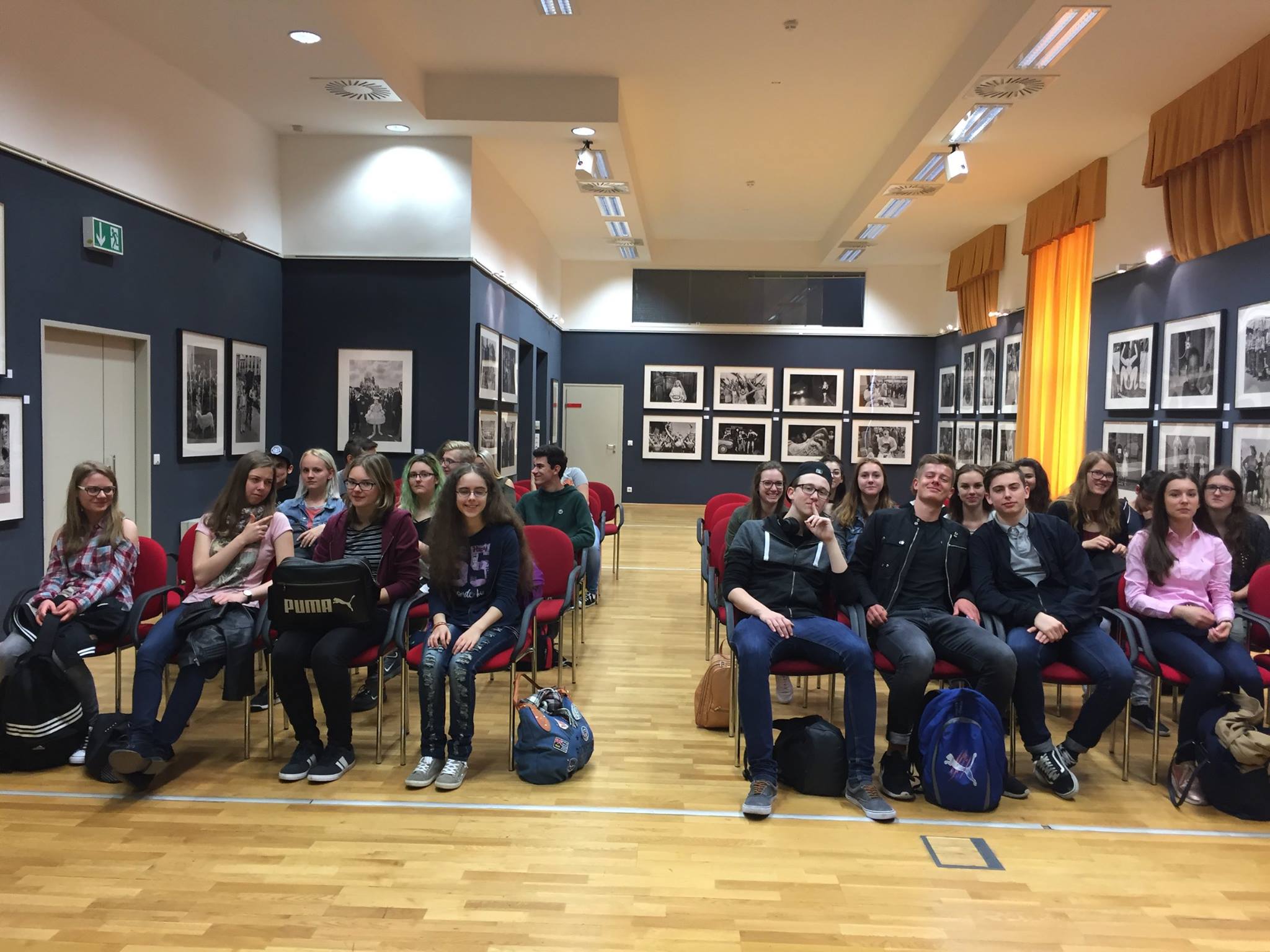 Mit einem Gruppenfoto beendeten wir unseren aufschlussreichen Besuch und nach einer herzlichen Verabschiedung ging es zu Fuß weiter zum Schwarzenbergplatz, um das spanische Sprach- und Kulturinstitut Instituto Cervantes kennenzulernen. Dort erklärte uns Bibliothekar Rafael de la Duena unter anderem den Aufbau der Bibliothek. Nachdem wir einen Blick auf die aktuelle Fotoausstellung Mit offenem Mund – eine Retrospektive der Arbeiten von Cristina García Rodero – geworfen hatten, informierte uns der Studienleiter Luis Angel Macías Amigo über das DELE-Zertifikat (das spanische Sprachdiplom), und animierte uns noch einmal zum Reden, – natürlich auf Spanisch, aber da waren die meisten schon etwas müde … Nach einer Stärkung traten wir reich an Informationen bei noch immer strahlendem Wetter wieder die Heimreise nach Perg an. Die Sonne schien fast so heiß wie in Spanien.
