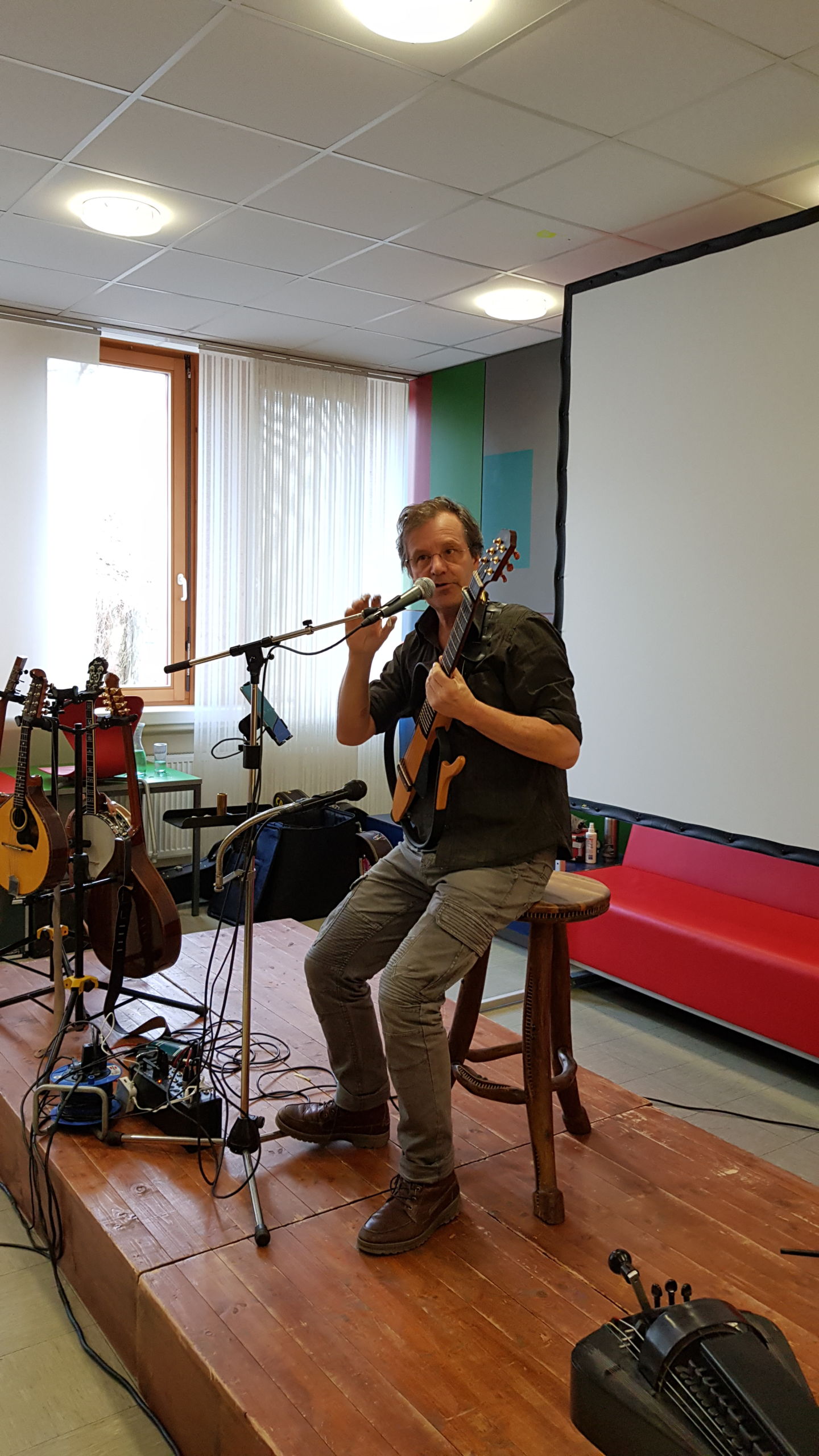 Am 12. Februar gab es für die 5. Klassen sowie die 6.M1 und 7.M1 eine interessante Veranstaltung: Der Allroundler Hubert Dohr stellte 14 Instrumente vor, die er auch alle spielen kann. So wurde auf allen Instrumenten eine Kostprobe gespielt und die Schüler_innen erfuhren Wissenswertes über Herkunft, Bau und Spielweise dieser Musikinstrumente. Mutige konnten auch das eine oder andere Instrument selbst ausprobieren.