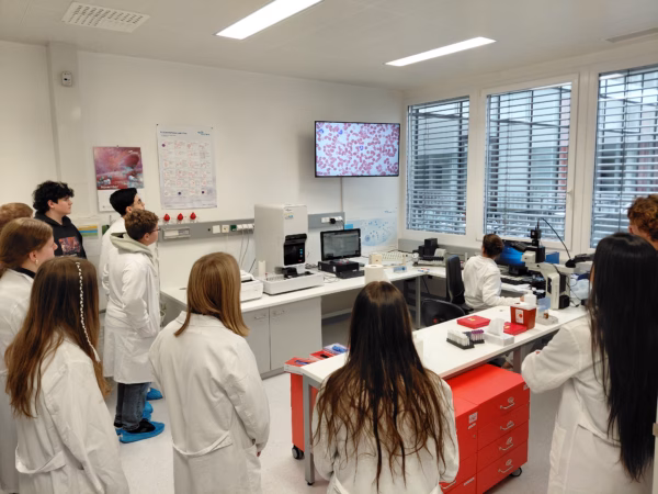 Am 14.11.2025 besuchte die 6 H1 die Blutzentrale des Roten Kreuzes OÖ in Linz. Auf einen sehr interessanten Vortrag folgte ein Rundgang durch die Labore, wobei wir uns auch praktisch betätigen durften (Mikroskopie & Blutgruppenbestimmung). Danach fand ein interessanter Workshop in der psychosozialen Beratungsstelle ZOE statt. Organisiert wurde die Lehrfahrt von unserem Biologielehrer Andreas Peter Schilcher. Herzlichen Dank an Herrn Stefan Czerny für den spannenden Vortrag in der Blutzentrale and an Frau Angela Hofmann für den interessanten Workshop bei ZOE.
