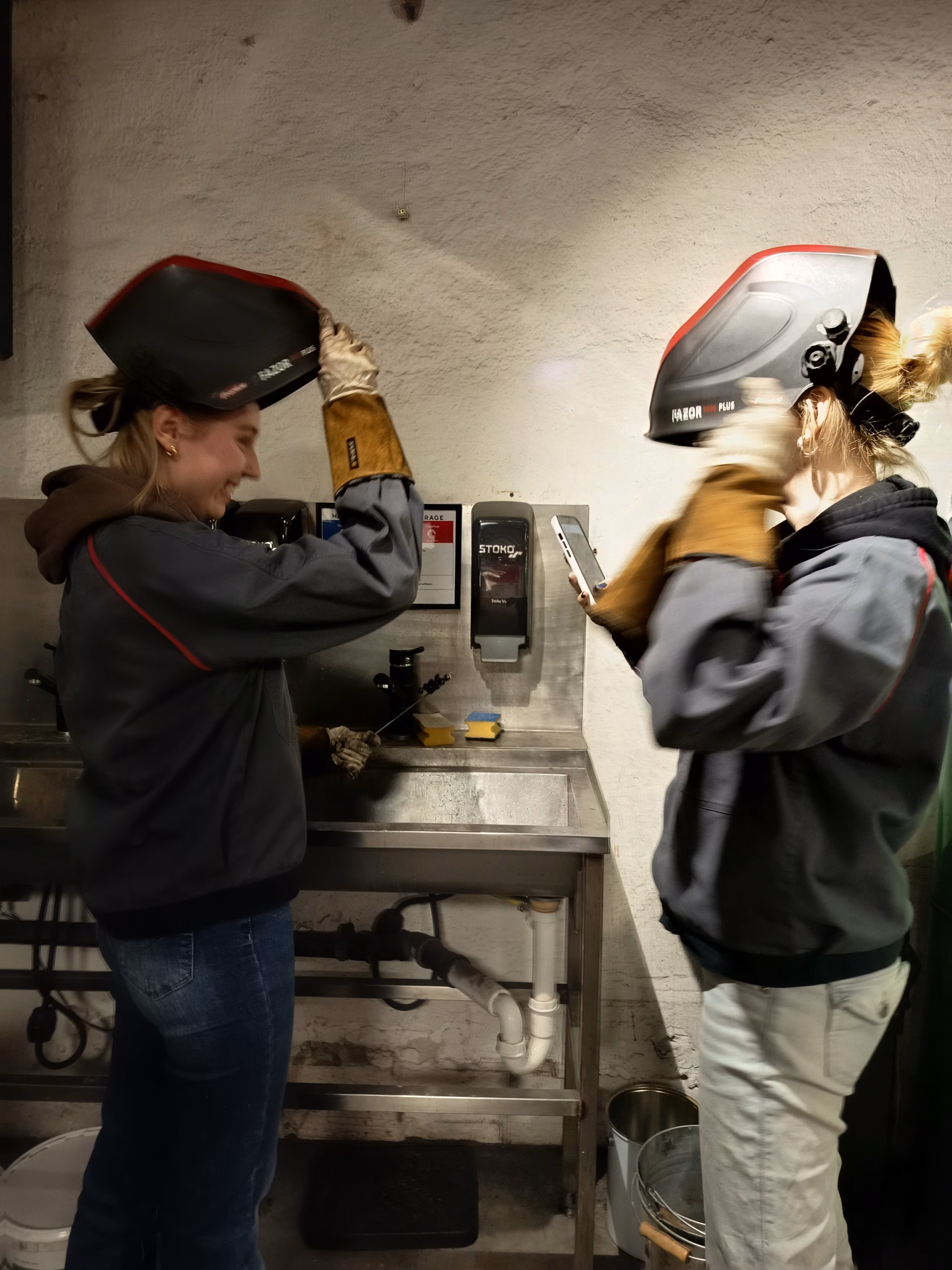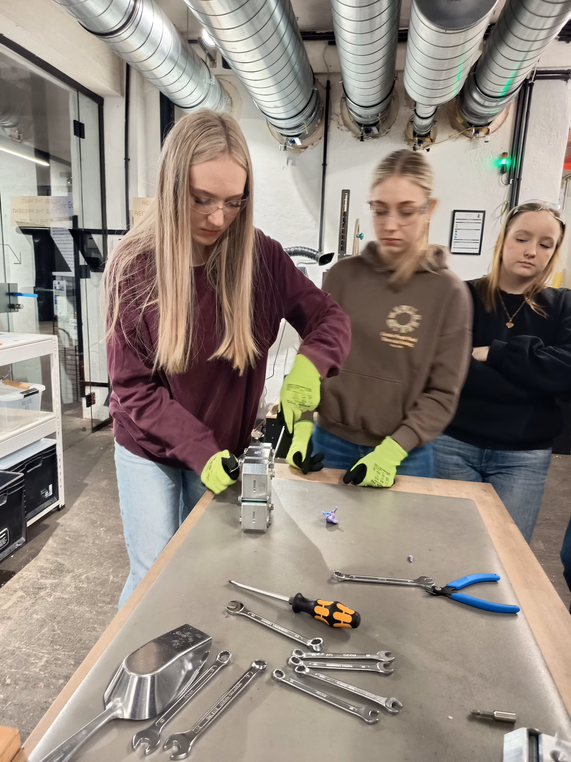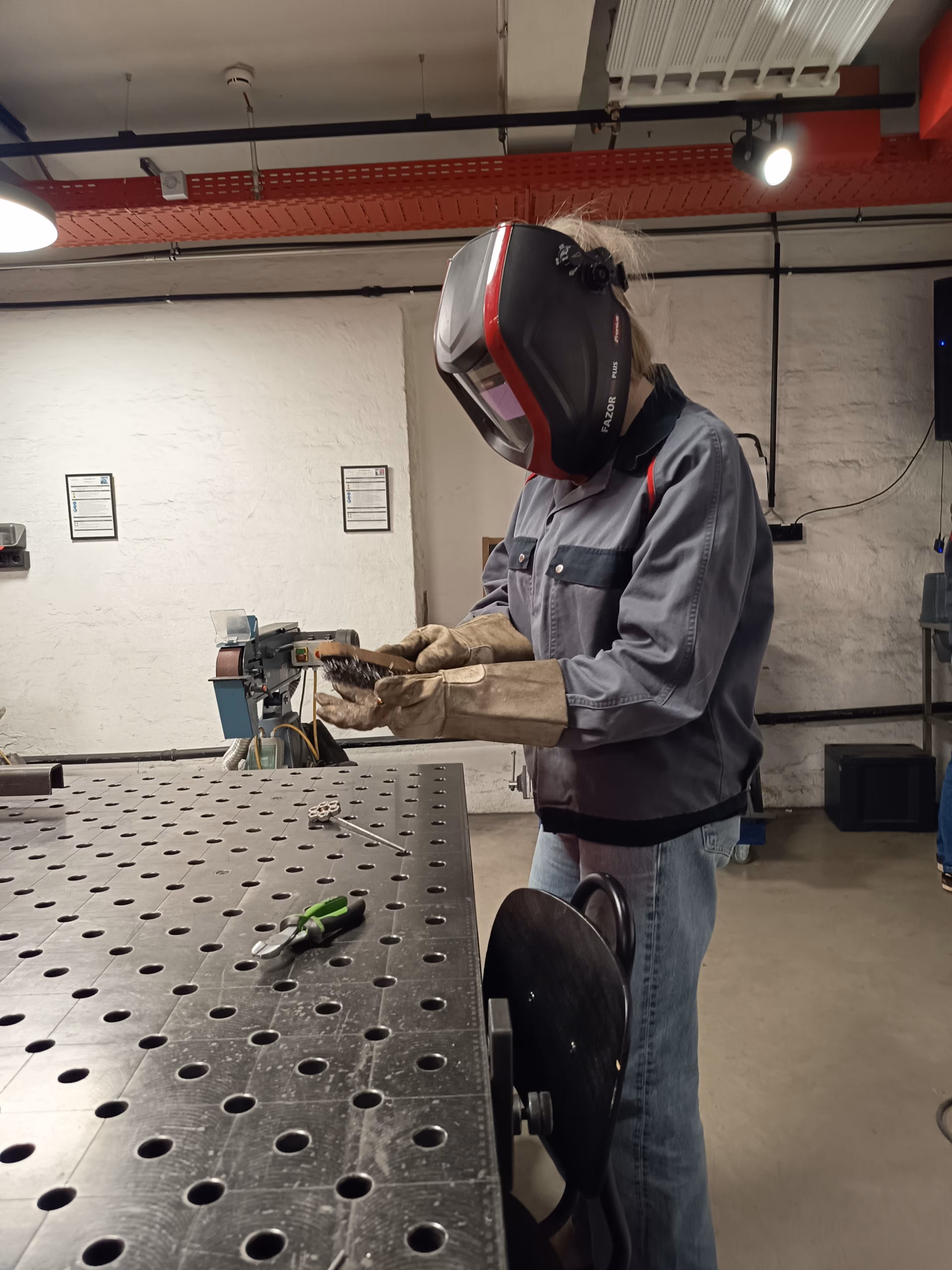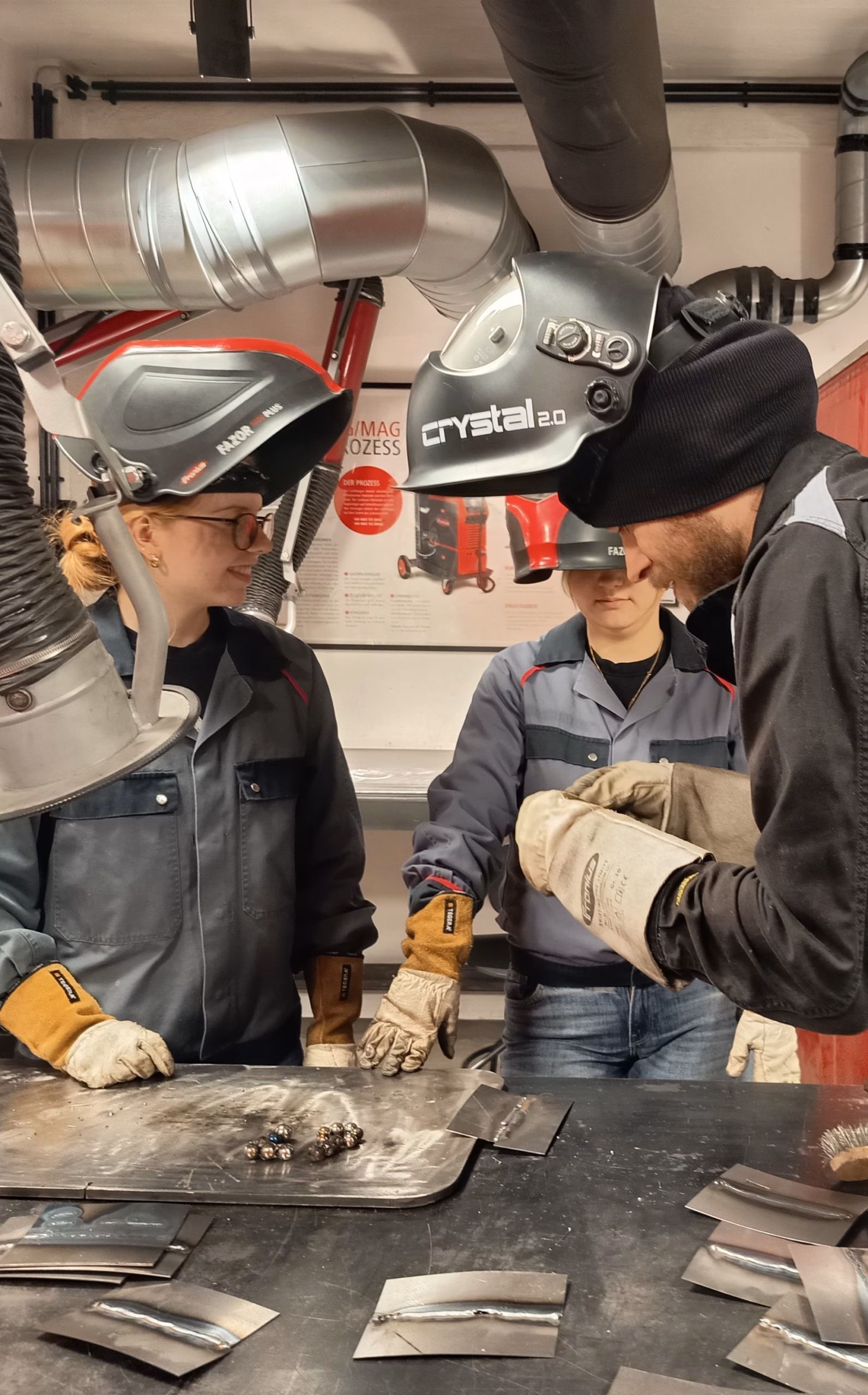 Auch Bearbeitung von Metall war Thema. Nach einer theoretischen Einführung zu MAG-schweißen konnte jede Schülerin ein eigenes Objekt verschweißen.