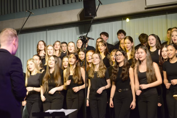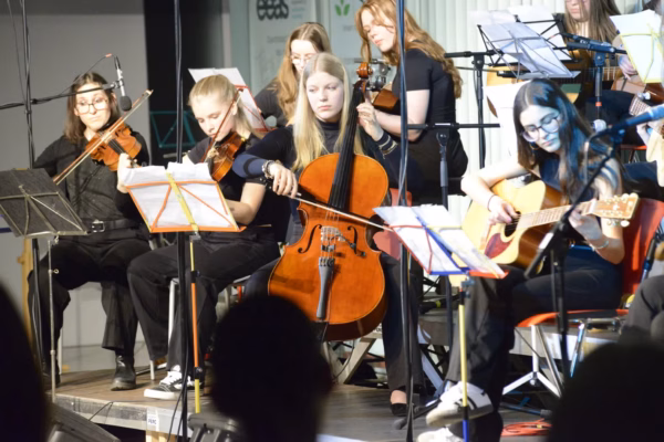 Die Schülerinnen präsentierten ein abwechslungsreiches und beeindruckendes musikalisches Programm und überzeugten sowohl mit ihrem Gesang als auch an den Instrumenten. Zu hören war der Schulchor mit über 50 Sänger*innen, der sowohl A-cappella-Stücke als auch Werke mit Rhythmusgruppe zum Besten gab. Auch Instrumentalensembles und Bands begeisterten mit packender oder auch gefühlvoller Musik. Für besonders mitreißende Klänge sorgte die Big Band.