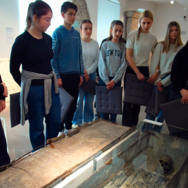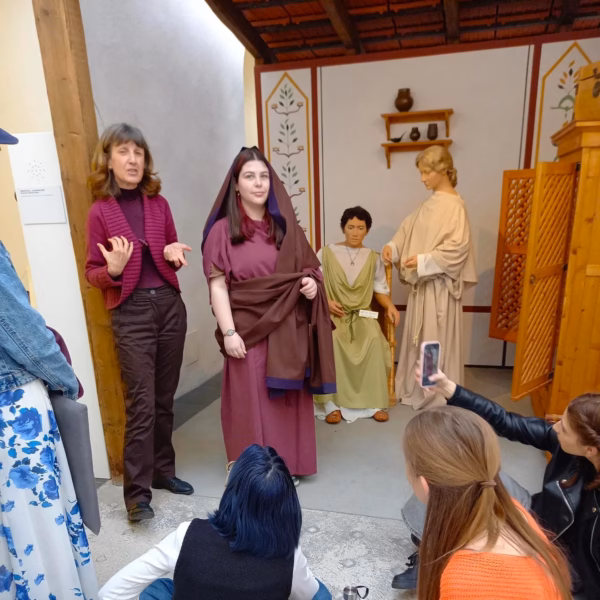 Ein römisches Atriumhaus, Grabsteine mit Inschriften sowie eine römische Geschäftsstraße boten den Lateinschüler*innen der 5. Klassen bei der Exkursion ins Römermuseum Wels am 10.03.2026 Einblicke in das Alltagsleben der Römer. Die interessante Führung durch die Ausstellung im ehemaligen Minoritenkloster wurde zudem durch das Ausprobieren von Alltagsgegenständen, antike Spiele und das Anprobieren von römischen Gewändern ergänzt und veranschaulicht.